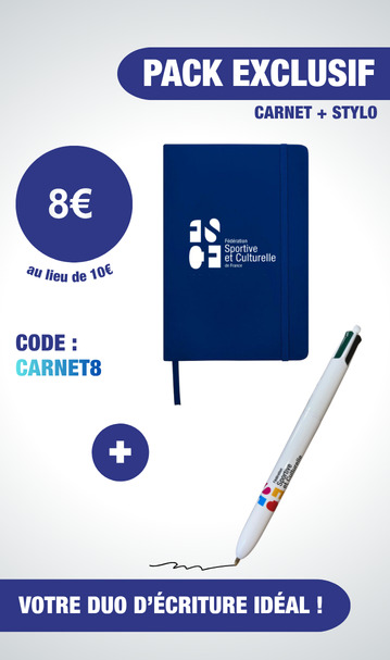 Découvrez notre carnet FSCF à couverture peau de pêche, doux au toucher et élégant. Idéal pour vos notes, vos souvenirs ou vos projets, il allie praticité et style tout en affichant fièrement l’identité FSCF.